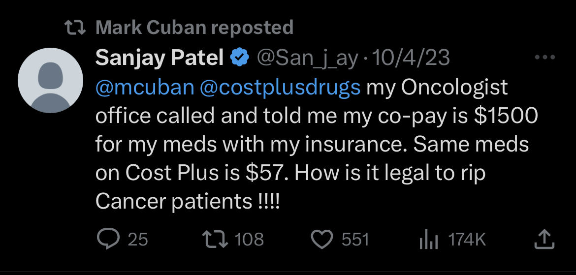 This is a longer show than normal, but it’s also like a show and a half. Mark Cuban talks not only about his work with Mark Cuban Cost Plus Drugs, which is a company that buys drugs direct from manufacturers and sells them for cost plus 15%, a dispensing fee, and shipping. It’s kind of crazy how so often that price is cheaper, sometimes considerably cheaper, than the price that plan members would have paid using their insurance—and the price that the plan is currently paying the PBM.